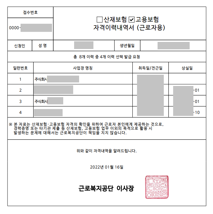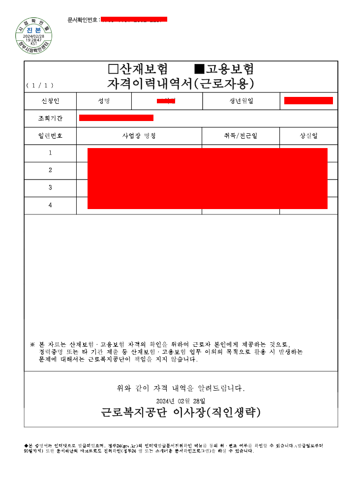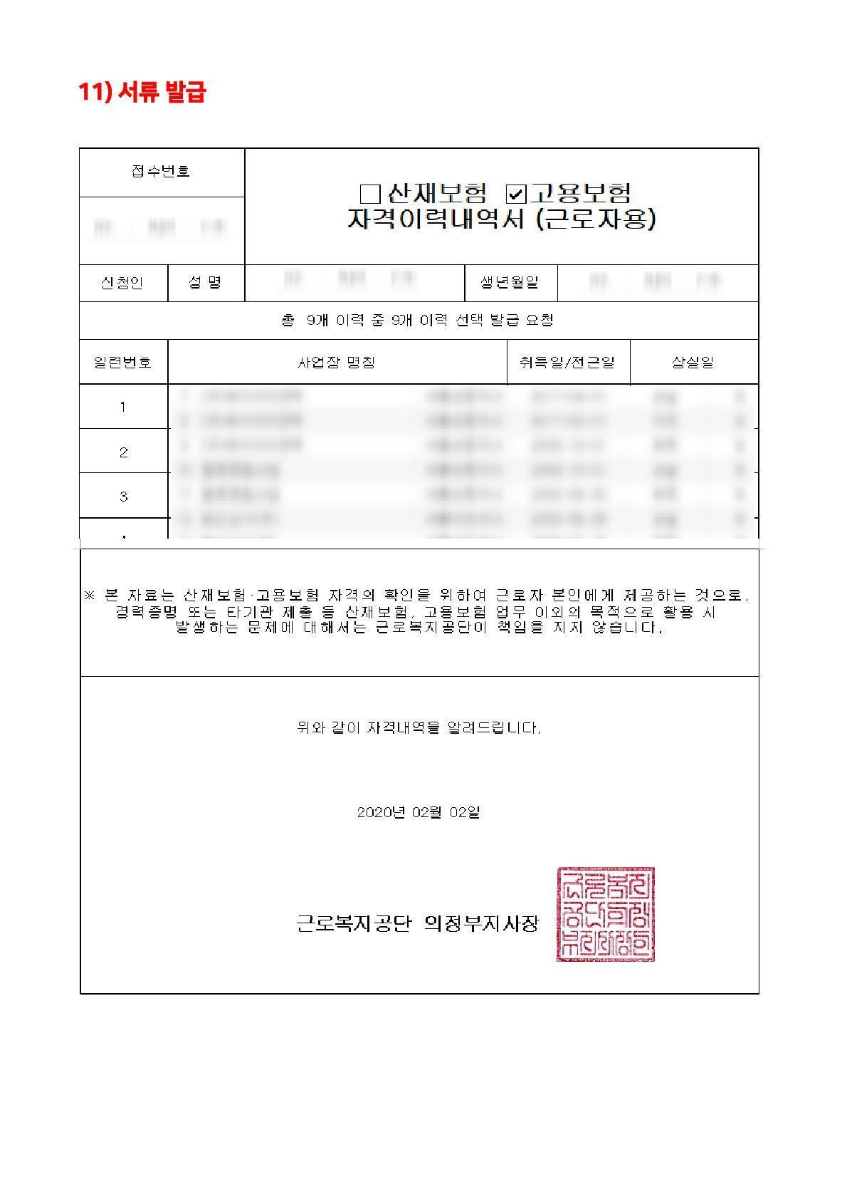 - 발급받은 문서는 이력서와 함께 제출하거나, 고용보험 관련 기관에 제출하여 사용합니다.
