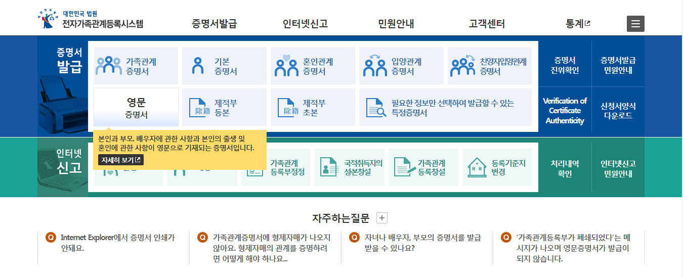 - 네, 대법원 전자가족관계등록시스템을 통해 인터넷으로 발급받을 수 있습니다.