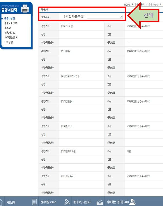 - 신청서 작성 : 재학증명서 발급을 위한 신청서를 작성합니다.
