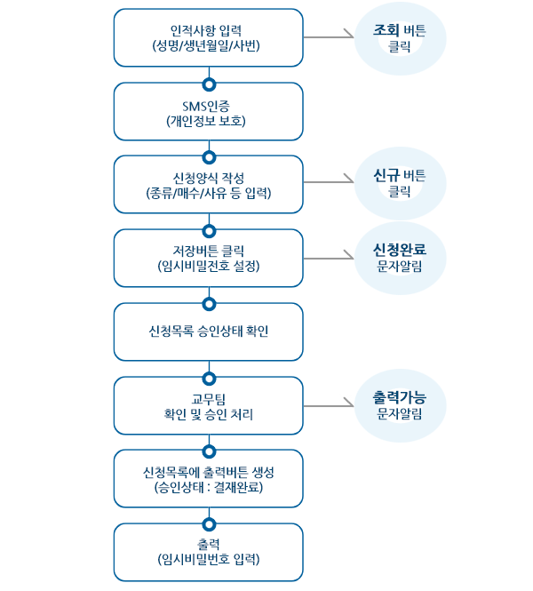 - 증명서 출력 : 발급이 완료되면, 증명서를 출력하거나 이메일로 받을 수 있습니다.
