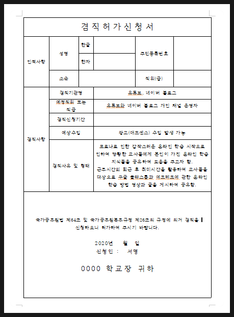 - 겸직허가신청서
