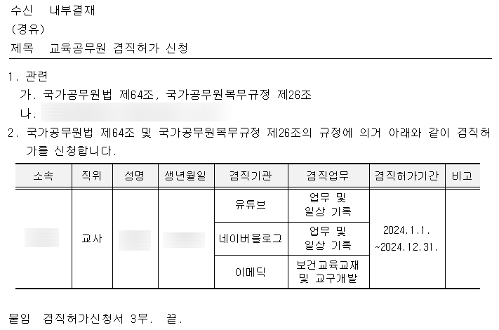 겸직허가서 발급 절차 📝