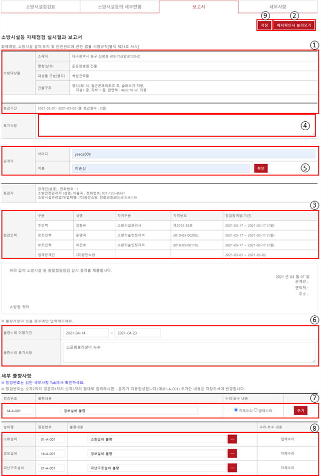 - 소방시설 점검 결과 보고서