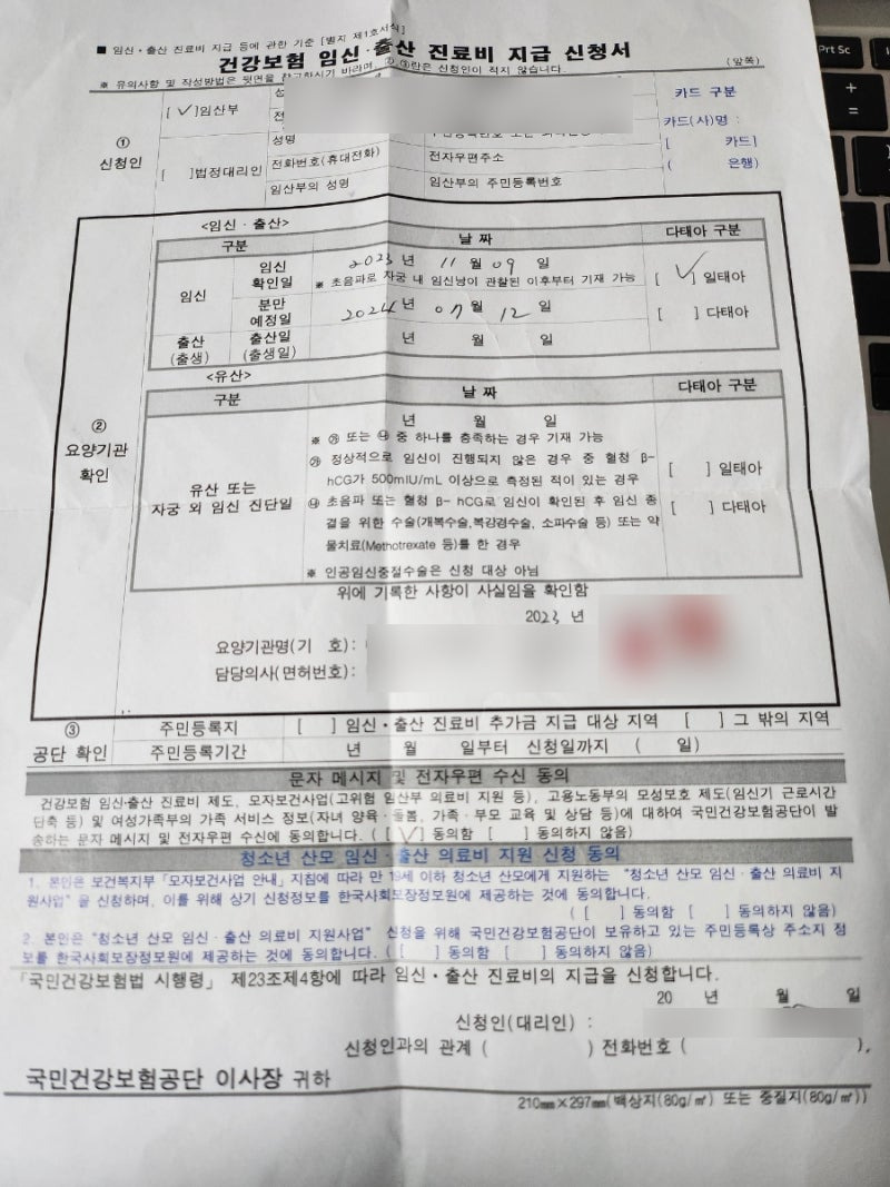 - 정보 입력 : 필요한 정보를 입력합니다. 이때, 임신확인서와 같은 서류가 필요할 수 있습니다.