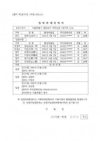 - A: 현재 입양관계증명서는 무료로 발급됩니다.