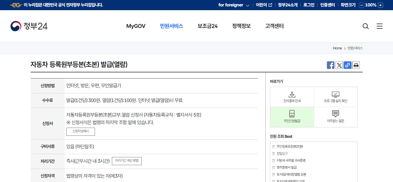 - Q: 자동차등록원부를 발급받는데 비용이 있나요?