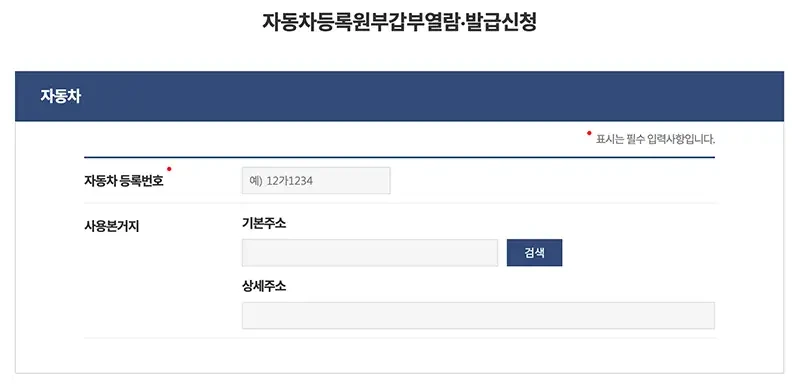 자동차 등록원부 발급 신청 양식