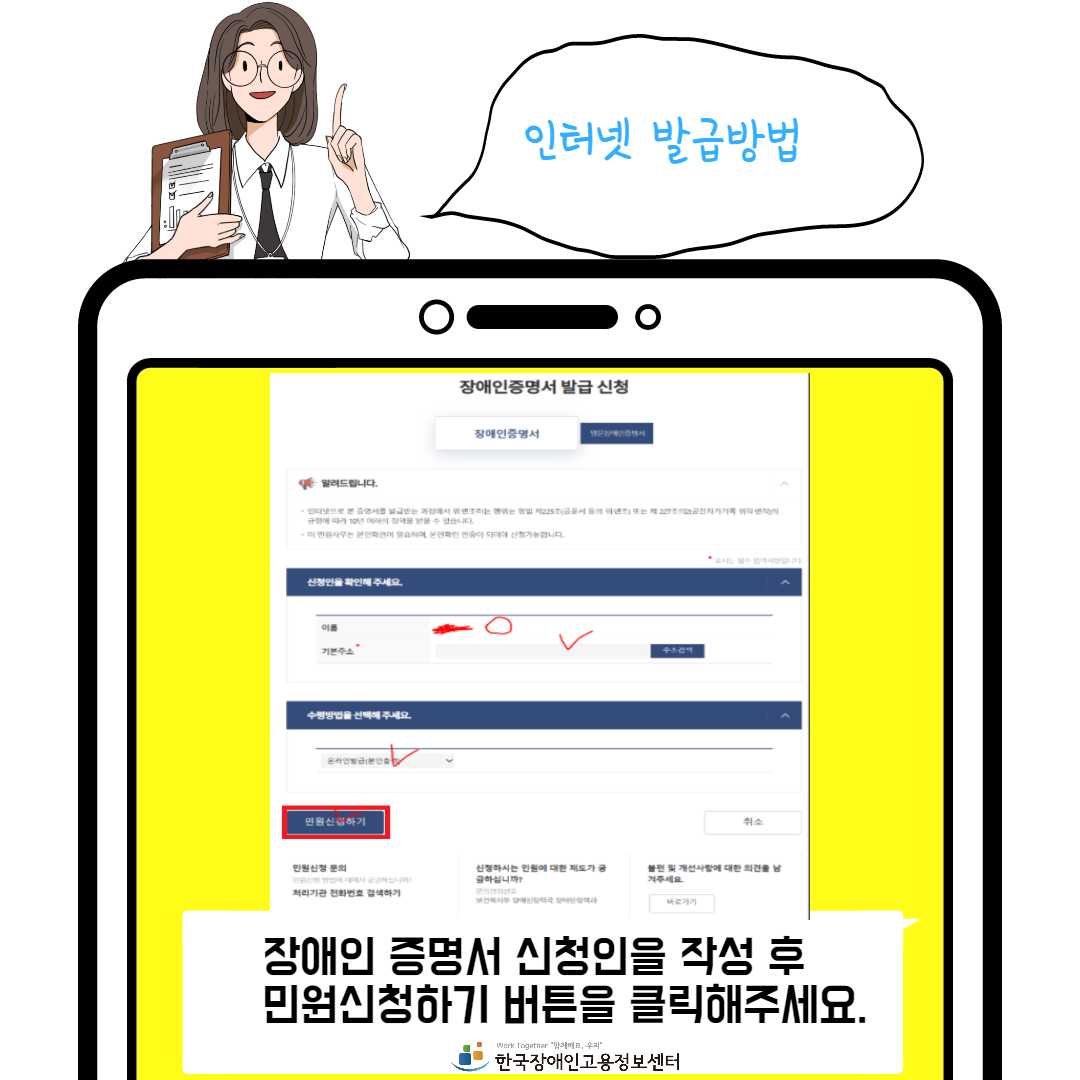 - 장애인으로 등록된 본인만 발급받을 수 있습니다.