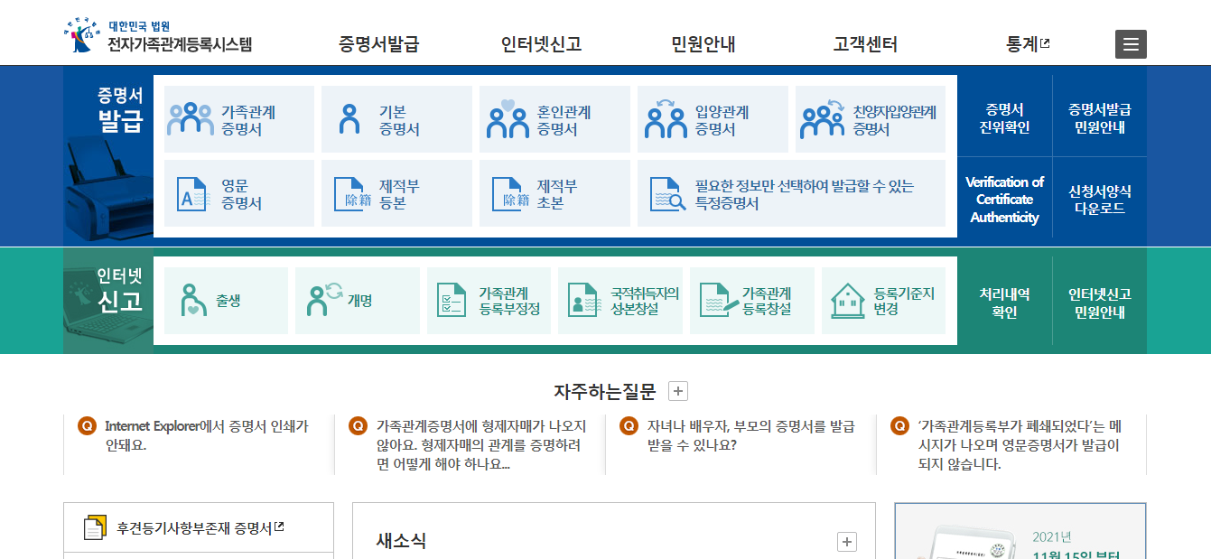 - 온라인 발급 : 전자정부 사이트나 대법원 전자가족관계등록시스템을 통해 신청.