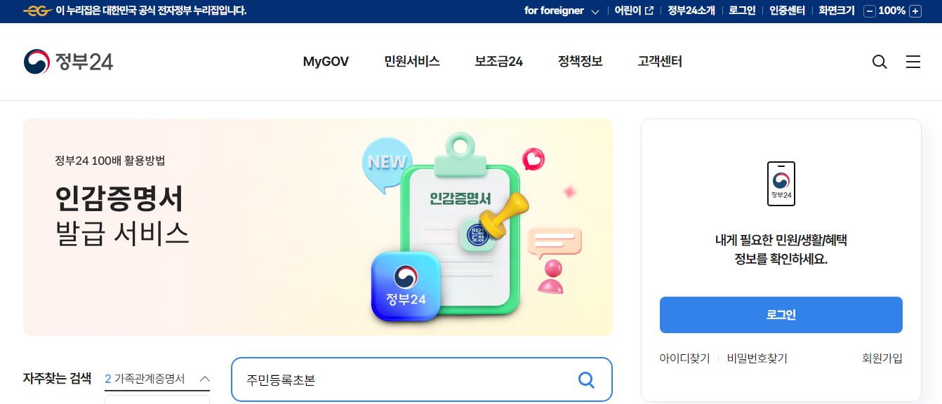 - 정부24 웹사이트 접속 : 먼저 정부24 웹사이트에 접속합니다.