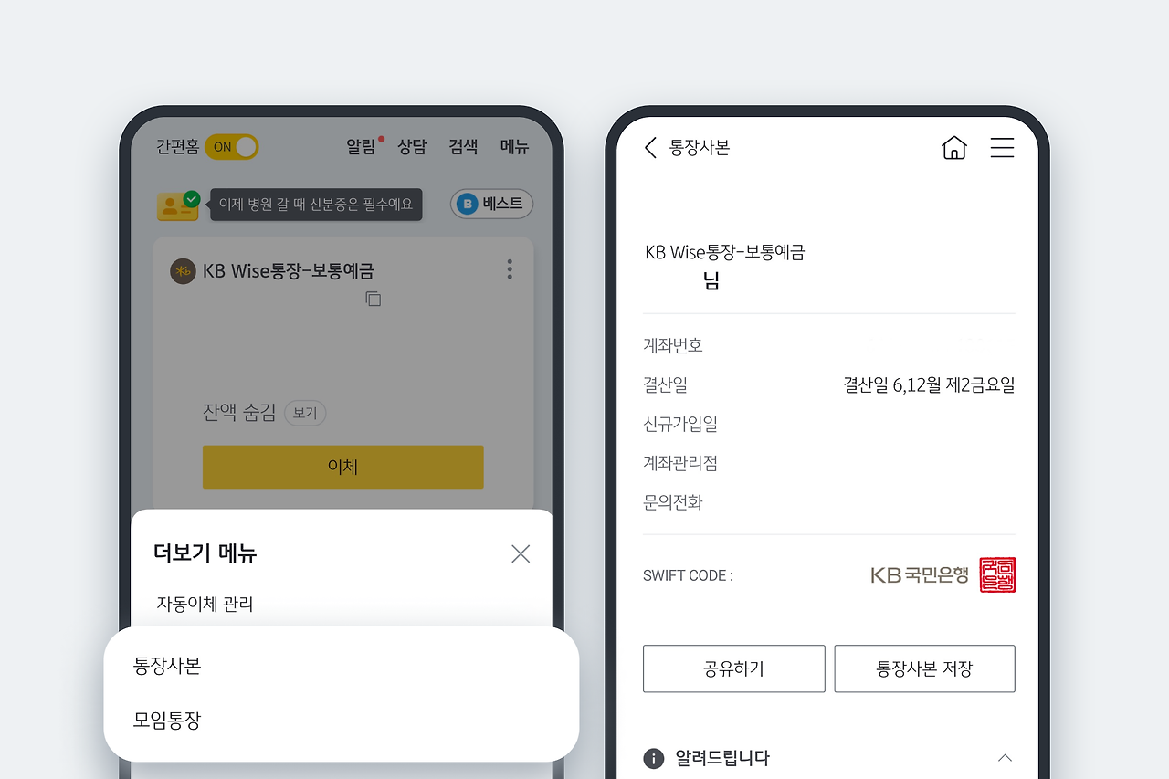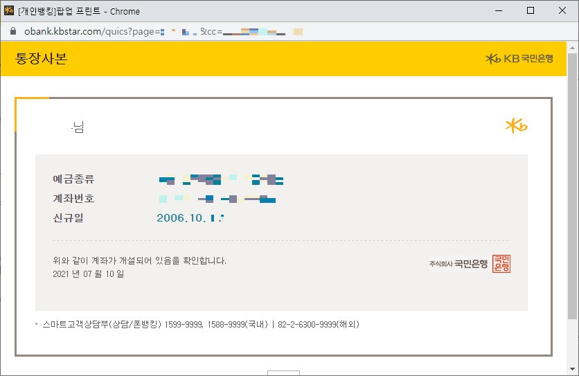 - 출력 및 저장 : 발급된 통장사본을 출력하거나 저장해요.